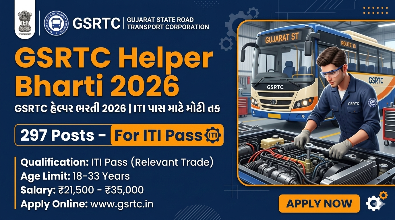 GSRTC Helper Recruitment 2026: એસ.ટી. નિગમમાં હેલ્પરની ૨૯૭ જગ્યાઓ માટે ભરતી, જાણો લાયકાત અને ફોર્મ ભરવાની રીત