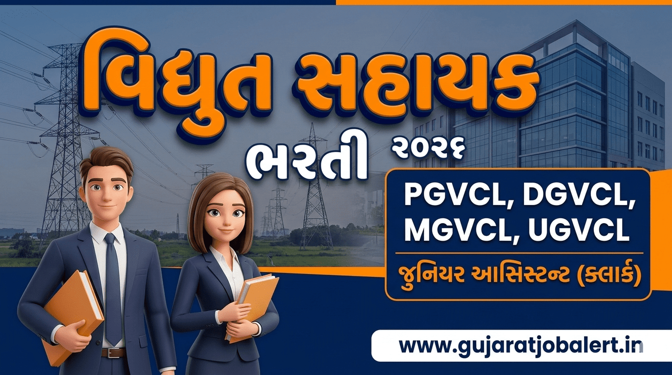 વિદ્યુત સહાયક (જુનિયર આસિસ્ટન્ટ) ભરતી ૨૦૨૬: ગુજરાત વીજ કંપનીઓ ⚡ ગ્રેજ્યુએટ પાસ યુવાનો માટે સરકારી વીજ કંપનીઓમાં ક્લાર્ક બનવાની શાનદાર તક વિદ્યુત સહાયક ભરતીની અપડેટ્સ WhatsApp પર મેળવો Gujarat Job Alert: ગુજરાત ઊર્જા વિકાસ નિગમ લિમિટેડ (GUVNL) હસ્તકની વિવિધ વીજ કંપનીઓ જેવી કે PGVCL, DGVCL, MGVCL, અને UGVCL માં વિદ્યુત સહાયક (જુનિયર આસિસ્ટન્ટ) ની ખાલી … Read more