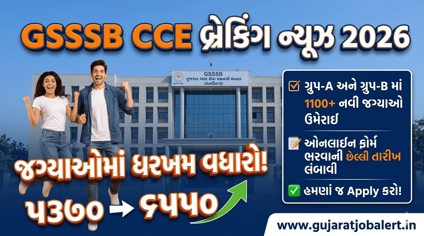 ગ્રામ સેવક ભરતી ૨૦૨૬: ગુજરાત પંચાયત વિભાગ દ્વારા નવી અપડેટ 🌾 ગ્રામીણ વિકાસ અને કૃષિ ક્ષેત્રે સરકારી નોકરી મેળવવાની ઉત્તમ તક પંચાયત ભરતીની તમામ અપડેટ્સ WhatsApp પર મેળવો Gujarat Job Alert: ગુજરાત પંચાયત સેવા પસંદગી મંડળ (GPSSB) દ્વારા આગામી સમયમાં ગ્રામ સેવકની ખાલી પડેલી જગ્યાઓ ભરવા માટે નવી ભરતી પ્રક્રિયા હાથ ધરવામાં આવશે. આ પોસ્ટ … Read more
