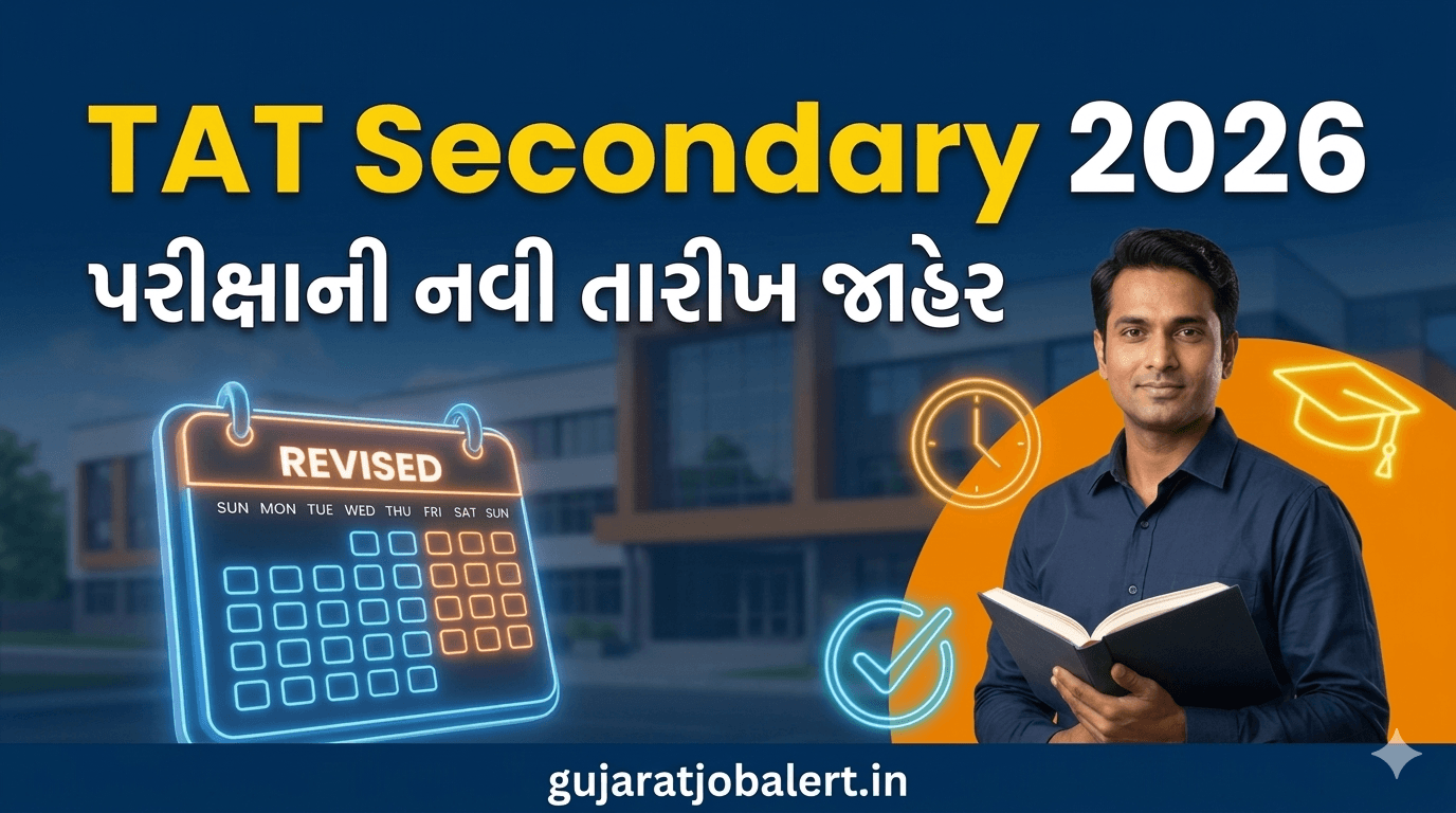 રાજ્ય પરીક્ષા બોર્ડ (State Examination Board – SEB, Gandhinagar) દ્વારા ગુજરાતની સરકારી અને ગ્રાન્ટેડ માધ્યમિક શાળાઓમાં (ધોરણ ૯ અને ૧૦) શિક્ષક બનવા માટે લેવાતી TAT Secondary 2026 (Teachers Aptitude Test) ની પરીક્ષાની તારીખમાં મહત્વનો ફેરફાર કરવામાં આવ્યો છે. વહીવટી કારણોસર જૂની તારીખ રદ કરીને બોર્ડ દ્વારા TAT Secondary 2026 New Exam Date અંગેનું સત્તાવાર નોટિફિકેશન બહાર પાડવામાં આવ્યું છે. ઉમેદવારોએ હવે આ નવી તારીખ મુજબ પોતાની તૈયારીઓને આખરી ઓપ આપવાનો રહેશે.